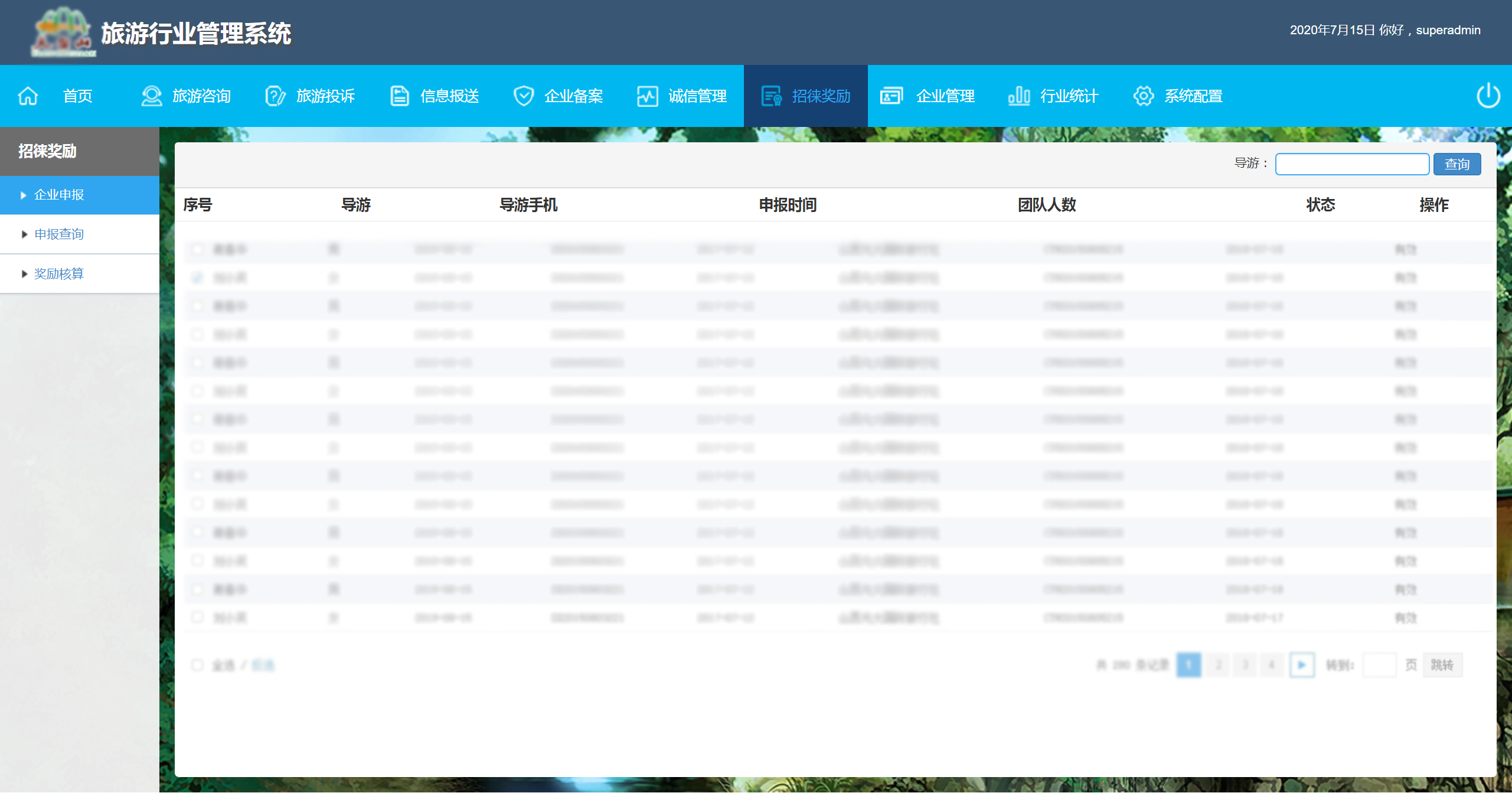 鼓勵各地旅行社帶團來本地旅游,旅游管理部門推出獎勵政策,刺激旅游發展。游客招徠獎勵系統結合旅游工作實際需求,融入流程優化管理理念,運用“大數據、云計算”技術開發的通用性業務管理系統。