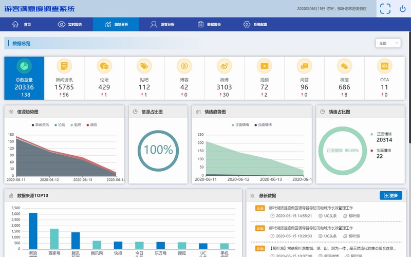 采集主流互聯(lián)網(wǎng)渠道上關(guān)于旅游景區(qū)、住宿、餐飲等方面的評價數(shù)據(jù)。得出游客對景區(qū)、酒店、餐飲等主要旅游要素的正面、負面、中性評價。識別各景區(qū)、酒店、餐飲網(wǎng)絡(luò)形象變化、市場優(yōu)勢和短板所在。