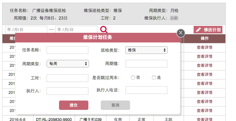建立景區(qū)設(shè)施設(shè)備維保任務(wù),包括時(shí)間、周期、計(jì)劃等。