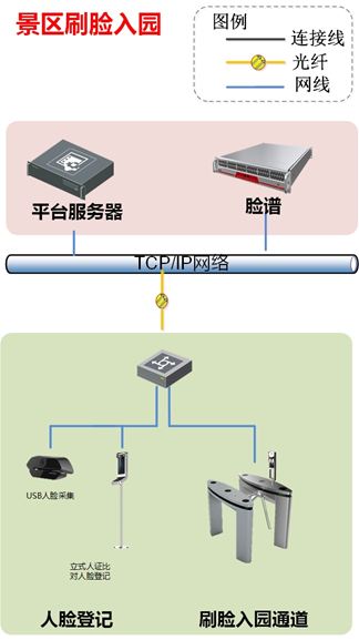 在景區出入口(檢票口)設置景區二次入園、刷臉入園、本地游客入園等專用通道,并在景區出口相關位置設置人臉登記臺。游客進入時通過刷臉實現自動放行,刷臉入園專用通道設置時,需考慮通道寬度等問題。一般情況下,可選用三輥閘設備,也可根據情況選擇翼閘或擺閘。