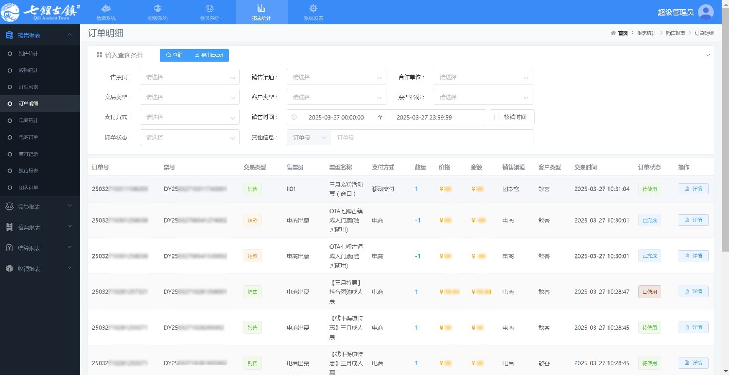 七鯉古鎮景區統一收銀與分賬系統