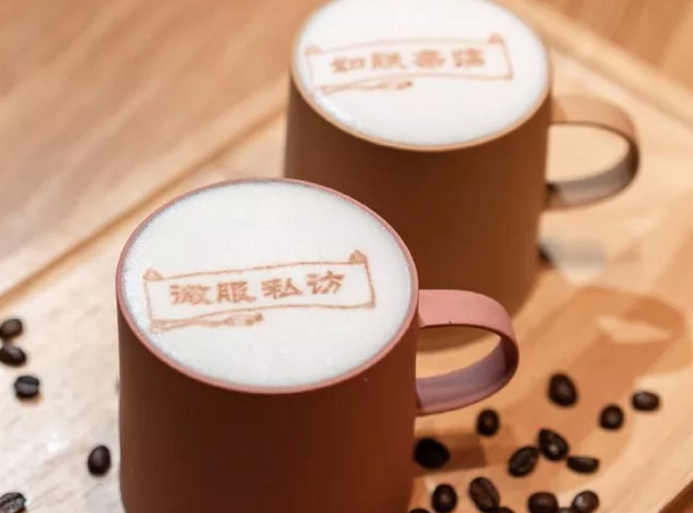 角樓咖啡有著鮮明的故宮特色。比如,以《千里江山圖》為主要的裝修元素,飲品的名字叫“康熙最愛巧克力”“三千佳麗奶茶”“養(yǎng)心咖啡”“佛手香茗”等等,連咖啡上的印花都是“御駕親征”“微服私訪”“朕心甚累”“母儀天下”“眾卿平身”“如朕親臨”等獨具宮廷特色的詞語。咖啡館內還有一個專門的文創(chuàng)產品展區(qū),可以買到《千里江山圖》的扇子、宮藏文物為封面的筆記本、故宮日歷等文創(chuàng)產品。當然,咖啡館里也有適應博物館文物保護的一些特殊規(guī)則,比如為了防火,店內不能給手機充電。