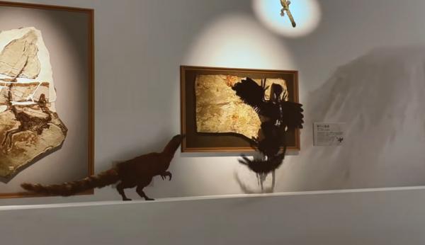 在上海自然博物館內,“龍吟九州·中國恐龍大展”展廳運用先進技術,讓人們裸眼看見中生代時期不同地貌環境下緩緩移動的恐龍。小觀眾揮動手勢,就能給不同種類的恐龍投喂食物;觀眾還能見到躍然于化石展品上靈活飛行、爬行的小恐龍投影,仿佛恐龍“復活”了。