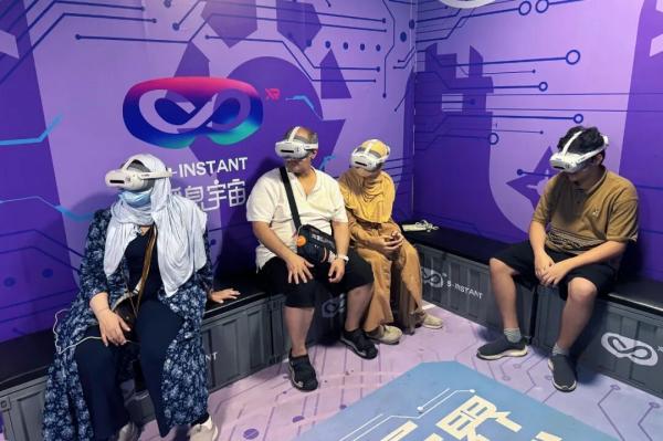 在上海影視樂(lè)園黃河路內(nèi),“元宇宙XR全感影院”瞬息魔方項(xiàng)目試運(yùn)營(yíng)首日即吸引2000余名游客爭(zhēng)相打卡。體驗(yàn)者們佩戴輕量化XR設(shè)備,在虛實(shí)交融的沉浸空間中穿越星際、探秘深海,通過(guò)多維度體感反饋與視覺(jué)奇觀(guān)開(kāi)啟“五感全開(kāi)”的次元冒險(xiǎn)。開(kāi)業(yè)至今,其新奇體驗(yàn)迅速圈粉——周末高峰時(shí)單日體驗(yàn)人數(shù)超300人,從開(kāi)館到閉館,熱門(mén)主題設(shè)備幾乎一直在運(yùn)行。候場(chǎng)區(qū)常坐滿(mǎn)等候的游客。已有多名外國(guó)游客前來(lái)體驗(yàn),用不太流利的中文連說(shuō)“太厲害了”。