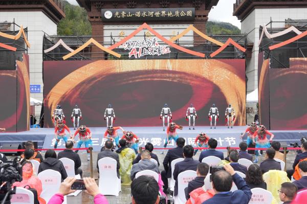 10月18日,第二十三屆四川光霧山國(guó)際紅葉節(jié)開(kāi)幕式上,多臺(tái)機(jī)器人與舞蹈演員同臺(tái)演繹國(guó)家級(jí)非遺《翻山鉸子》。金屬機(jī)械臂隨傳統(tǒng)韻律翻飛,與演員的靈動(dòng)舞姿相映成趣,剛勁的非遺動(dòng)作與科技感十足的機(jī)械運(yùn)轉(zhuǎn)完美融合,瞬間點(diǎn)燃現(xiàn)場(chǎng)氛圍。