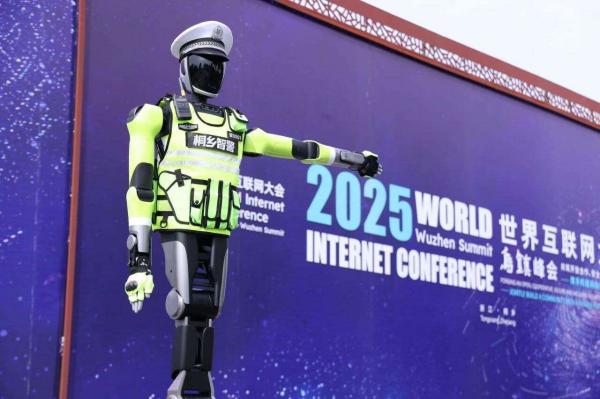 智能眼鏡為外國游客實時翻譯并指引路線,巡邏隊員的無人機在空中緩緩飛行監測客流,輪臂式交通指揮機器人抬臂指引車流——在烏鎮,智慧生活場景早已融入日常。